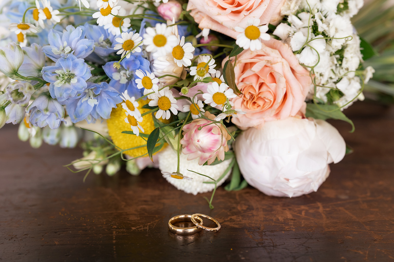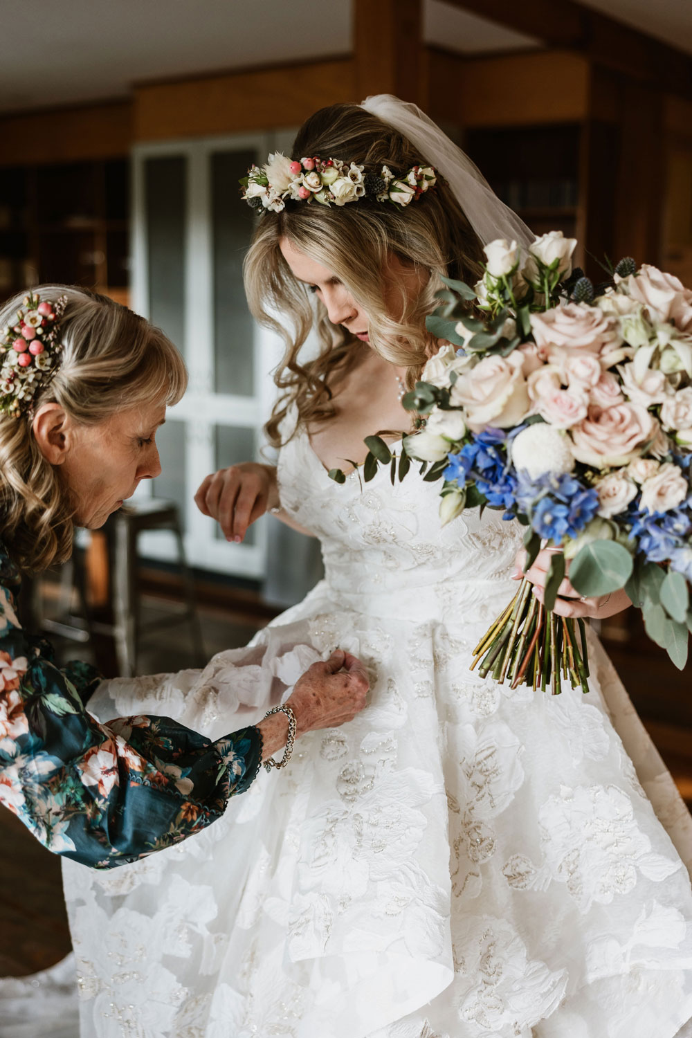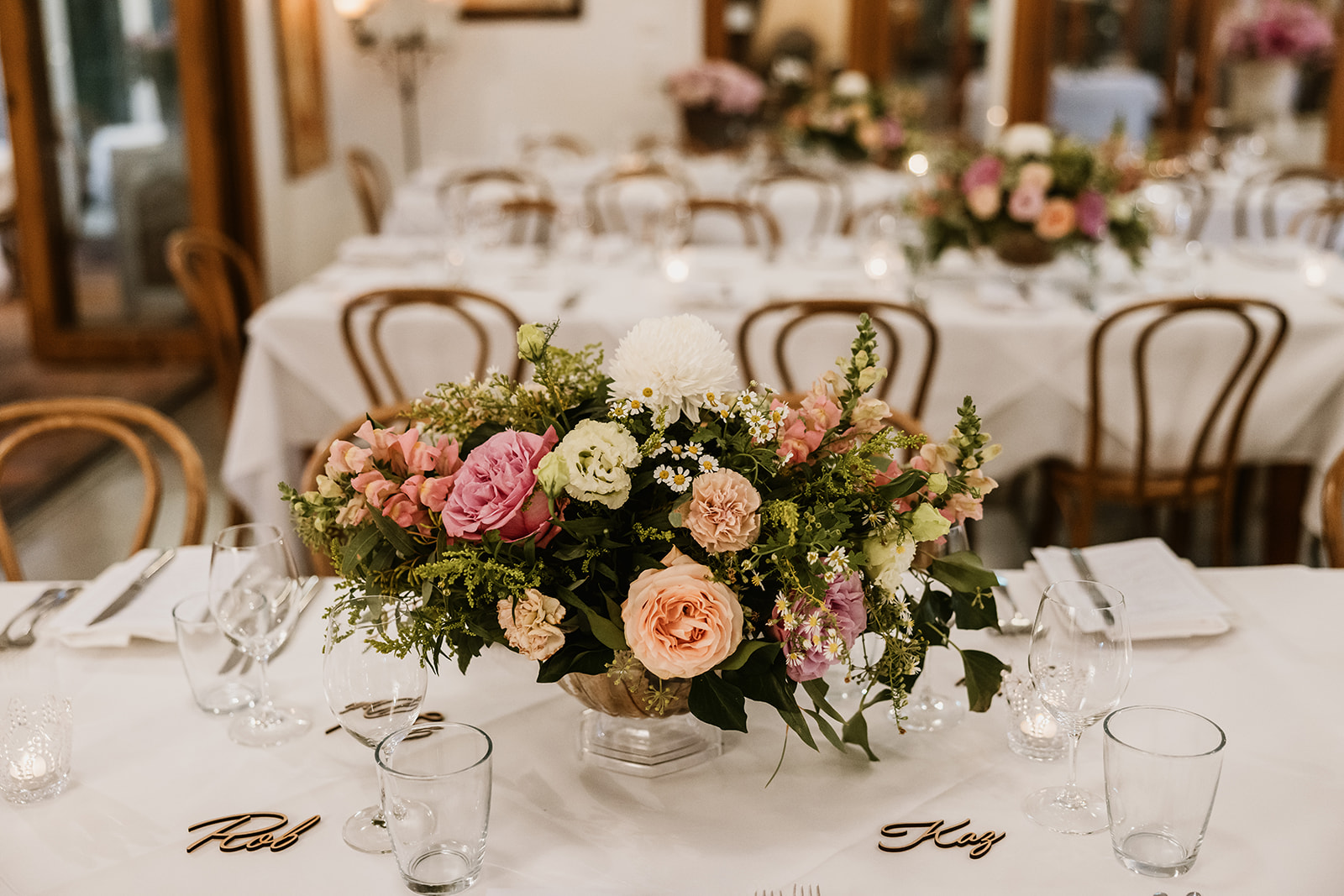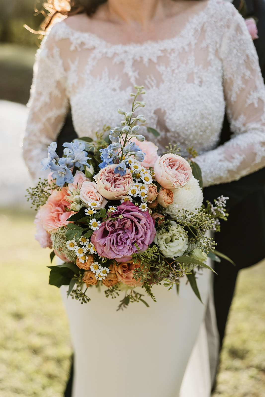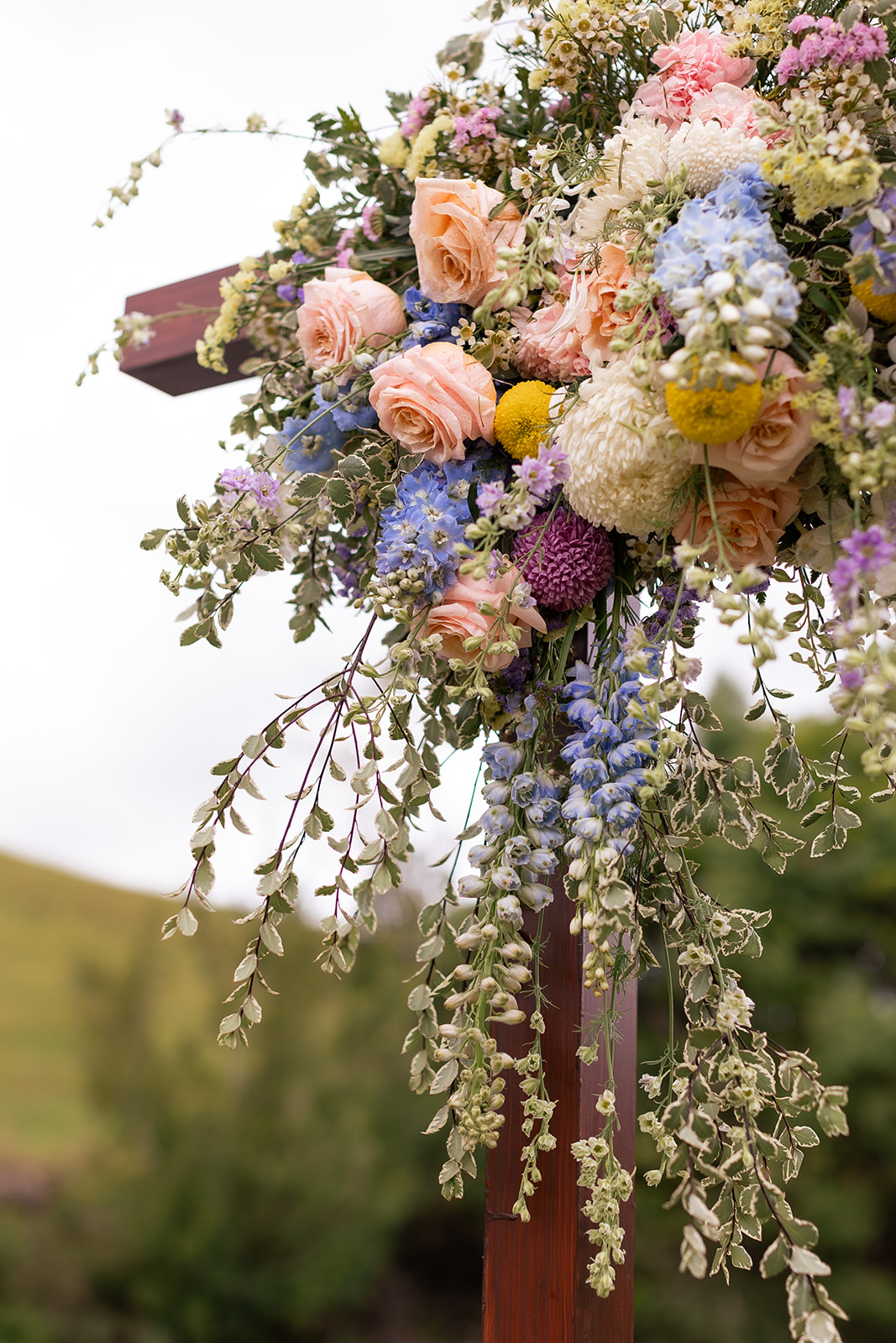 Mayflowers created gorgeous arrangements to place in the water fountain for the ceremony and even waded in the water feature to place stunning arrangements around to decorate the outside gathering space. It was beautiful.